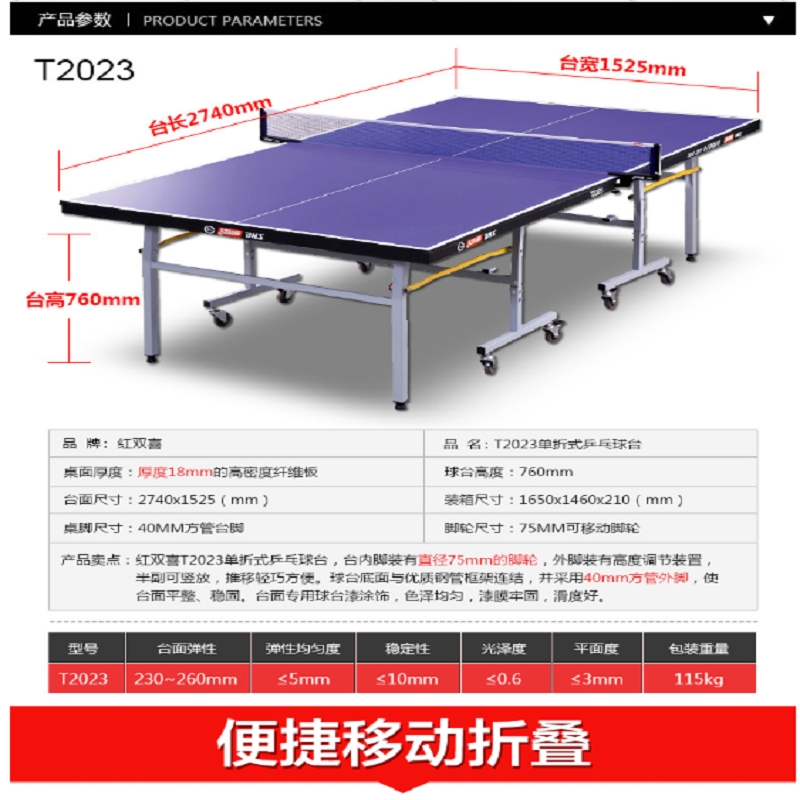 紅雙喜T3726乒乓球臺標準...
