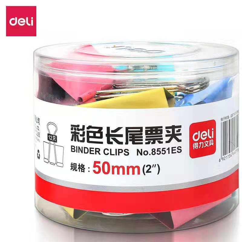 得力彩色長尾票夾50mm
